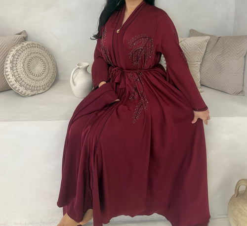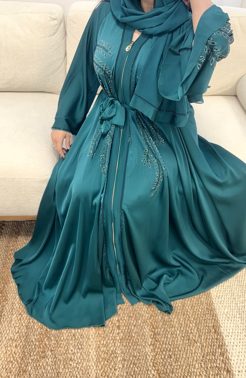 A beautiful, elegant abaya featuring delicate embroidery on both the front and back.